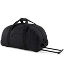 600D polyester. Padded hand grip. Detachable adjustable shoulder strap with pad. Haul handle. Retractable locking tow handle. Lockable main zip. Zip pouch pocket. Compression straps. Durable integrated skate wheels. Capacity 105 litres.