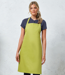 100% organic cotton. Pre-shrunk. Self fabric neckband. Self fabric ties. Width 60cm. Length from waist 62cm. Total length 87cm. Industrial laundry 85°C. Domestic wash 60°C.