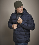 Recycled matte textured ripstop polyester outer. DuPont™ padding. Recycled self colour nylon 380T lining, dusty orange has contrast lining. Showerproof. Grown on hood with bound opening. Full length SBS zip with chin guard and inner zip guard. Inner pocket. Two front zip pockets. Bound elasticated cuffs. Drawcord hem.