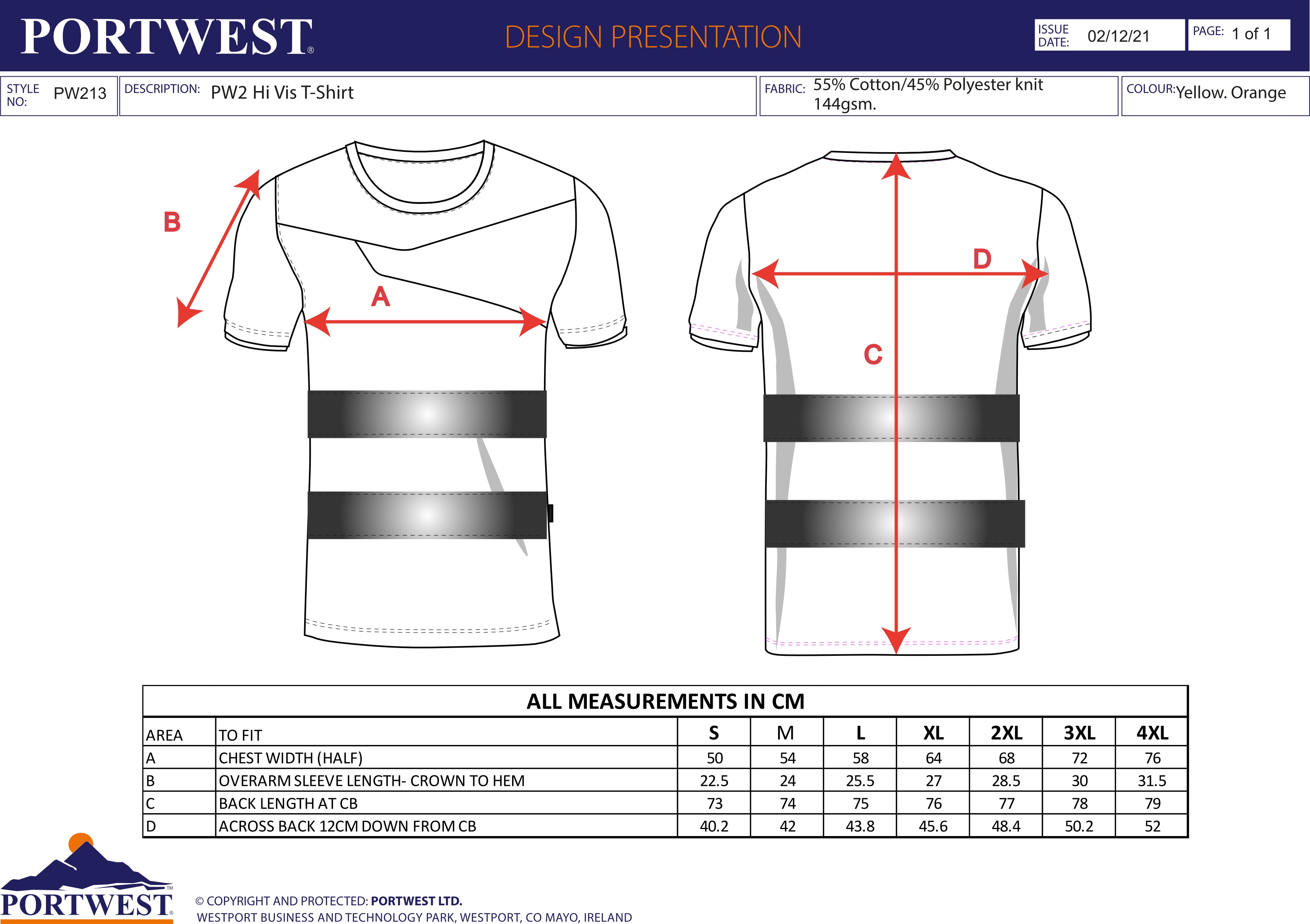 Portwest PW2 Hi-Vis Cotton Comfort T-Shirt S/S PW213