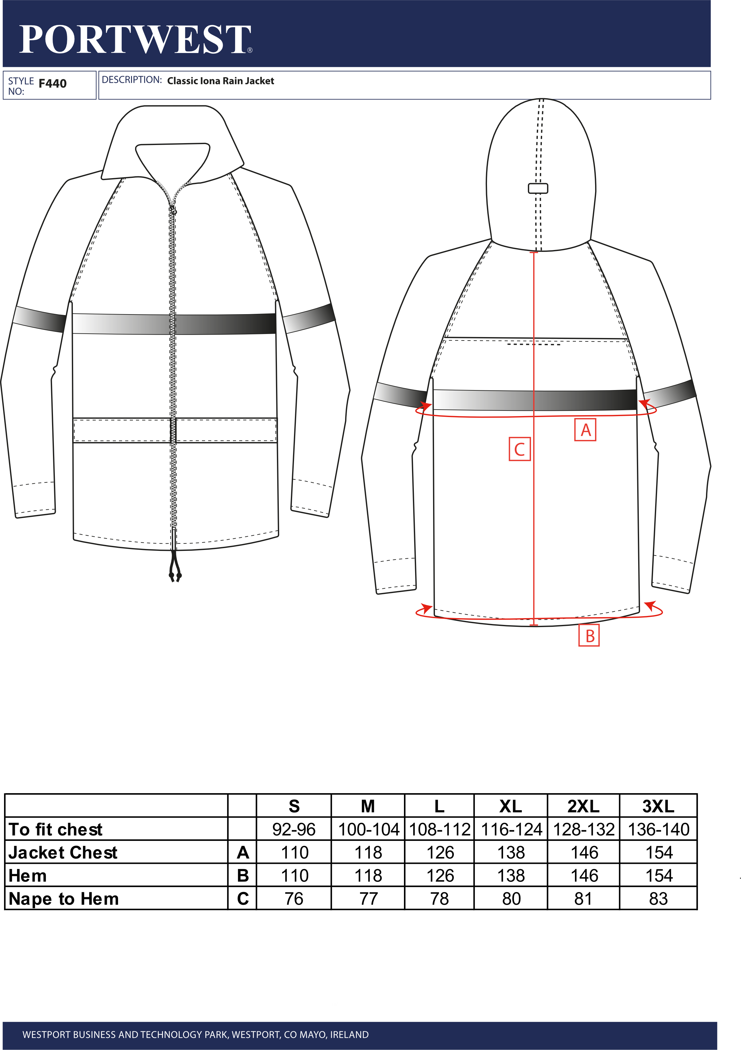 Lightweight and practical the Classic Iona Rain Jacket offers waterproof protection and increased visibility. Features include pack-away hood, adjustable drawcord hem, large storage pockets and vented back yoke and eyelets for ventilation.
