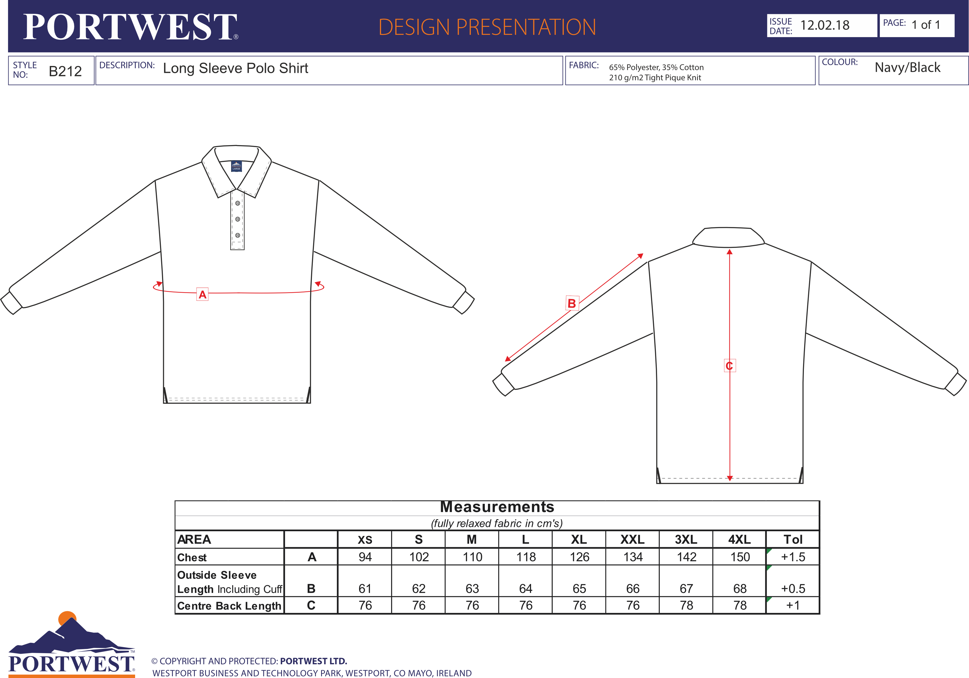 Portwest Genoa Long Sleeved Polo Shirt B212