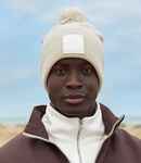 100% recycled polyester. Micro fleece lining. Double layer knit. Cuffed design. Self colour pom pom. Cotton twill patch for decoration (5 x 5cm). Tear out label.
